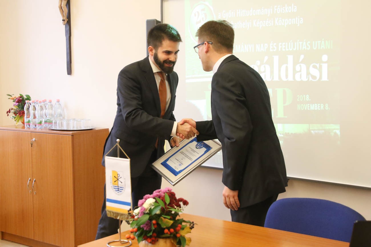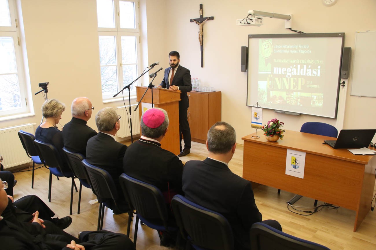 A Győri Hittudományi Főiskola Szombathelyi Képzési Központ felújítás utáni megáldási ünnepségét tartották csütörtökön, ahol köszöntőt mondott dr. Puskás Tivadar Szombathely Megyei Jogú Város polgármestere és dr. Balázsy Péter megyei jegyző, majd átadták az emléklapokat Szombathely Város Közgyűlése és a Vas Megyei Közgyűlés nevében dr. Németh Norbert szakigazgatónak. Az eseményen köszöntőt mondott dr. Németh István, az ELTE szombathelyi koordinációs rektorhelyettese is. A felújított épületet dr. Veres András győri megyéspüspök áldotta meg, majd szentmisét celebrált a szombathelyi székesegyház Madonna-kápolnájában.