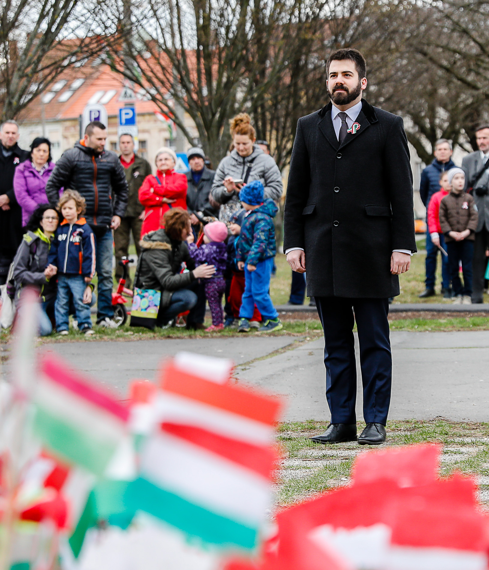 Szombathelyen huszárokkal, zenészekkel, táncosokkal március 15-én reggel 9 órakor megindult az emlékműtől a szabadságharc lelkületét idéző menet, hogy aztán a részt vevők első állomásként az Ady téren, Petőfi Sándor szobránál róják le kegyeletüket.