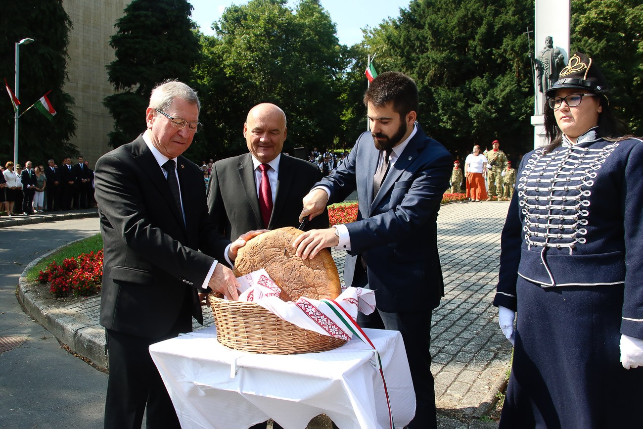 Ünnepi szentmisével kezdődött ma Szombathelyen az államalapító Szent István király ünnepe. A Szent István szobor előtti téren folytatódott a program, ahol ünnepi beszédet mondott dr. Balázsy Péter, megyei jegyző. Ünnepi szavaival többek között kitért arra: „Itt állunk és emlékezünk hosszú évtizedek óta, így nem tudjuk és nem is akarjuk kikerülni, hogy számadásra késztessük saját magunkat. Mi az, amit saját magunk számára le tudunk vonni első királyunk örökségéből. Hogy tudjuk ápolni az örökségét, mennyiben tudunk megfelelni annak. Mi végre vagyunk ezen a világon, mi a mi generációnk küldetése? De fel kell tennünk a kérdést, hogy a Szent István-i örökség mit jelent itt és most, 2019-ben Szombathelyen? Meggyőződésem, hogy legfőképpen kötelez bennünket. Kötelez arra, hogy ezer évvel később is jó gazdái legyünk ennek a csodálatos, kétezer éves városnak.”