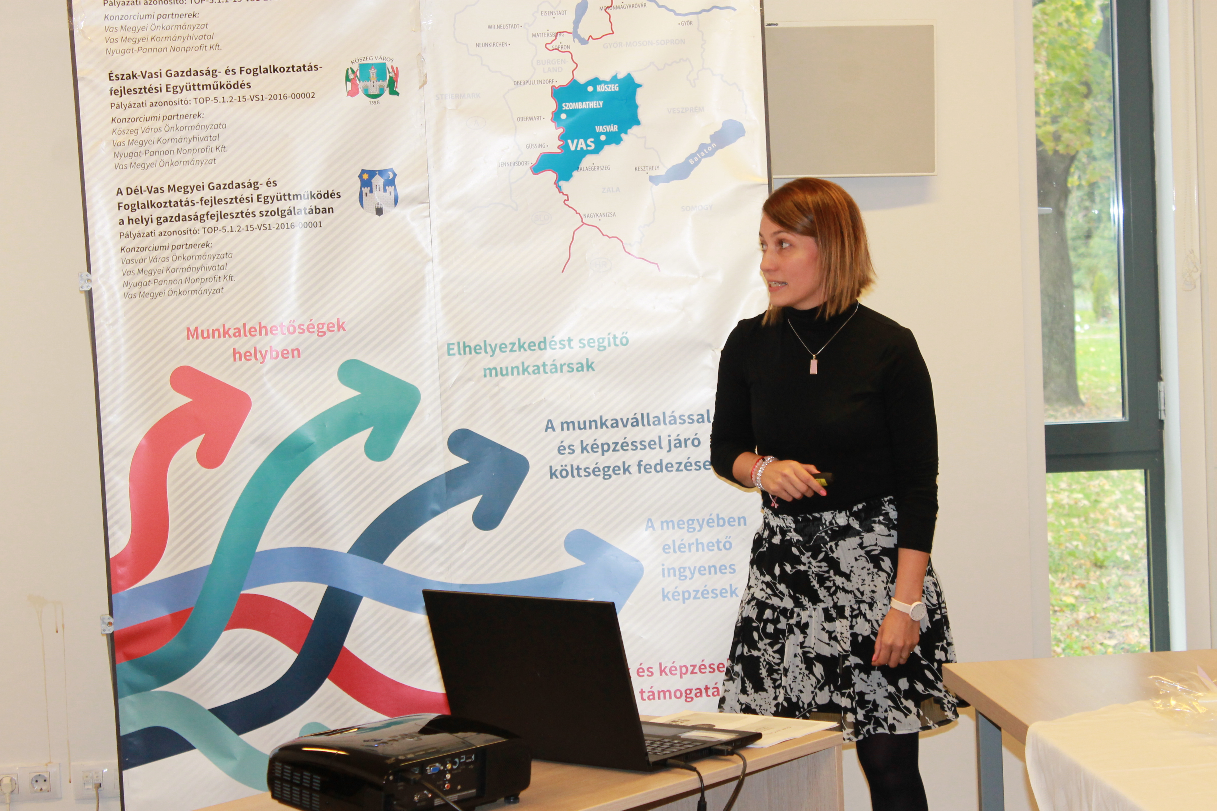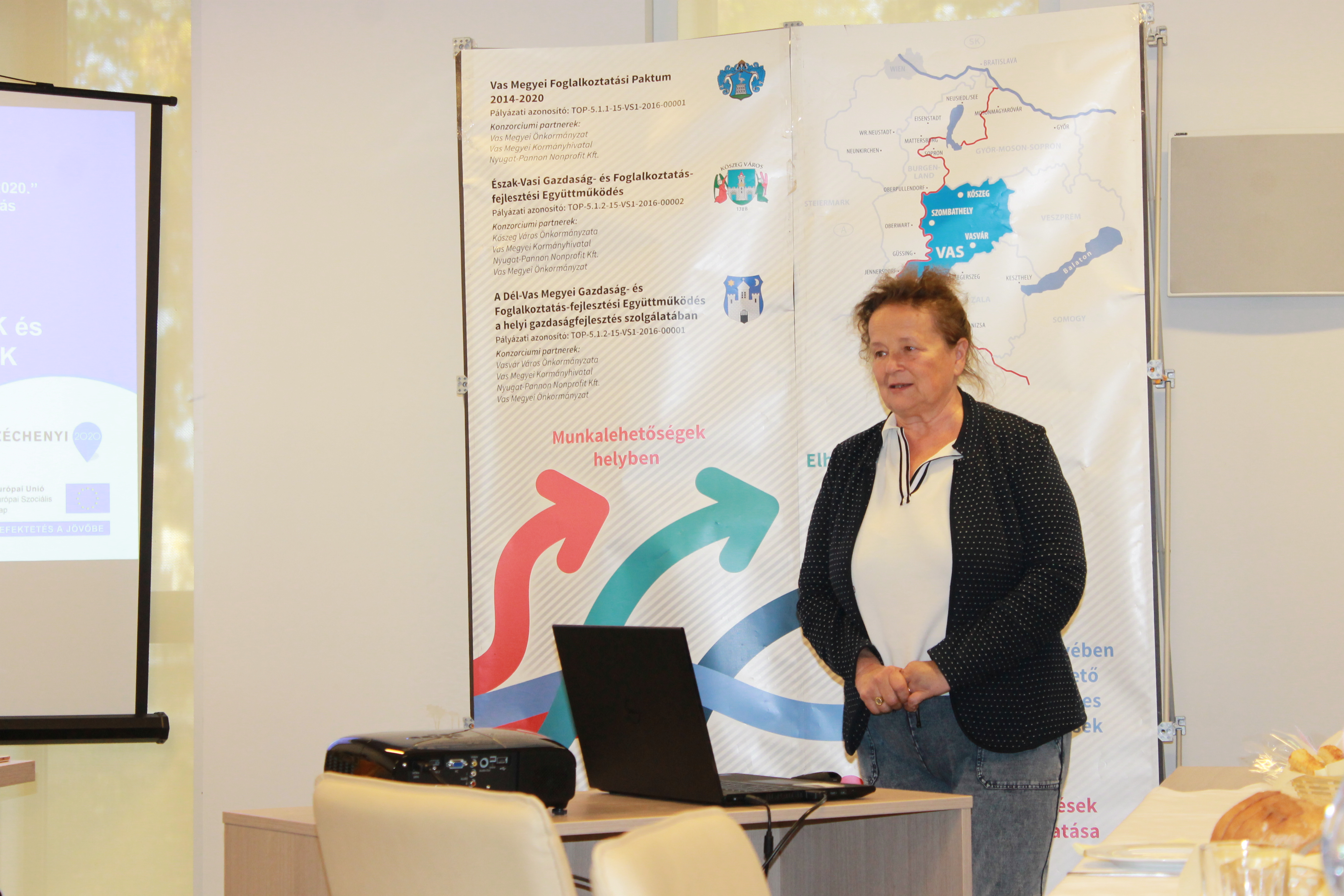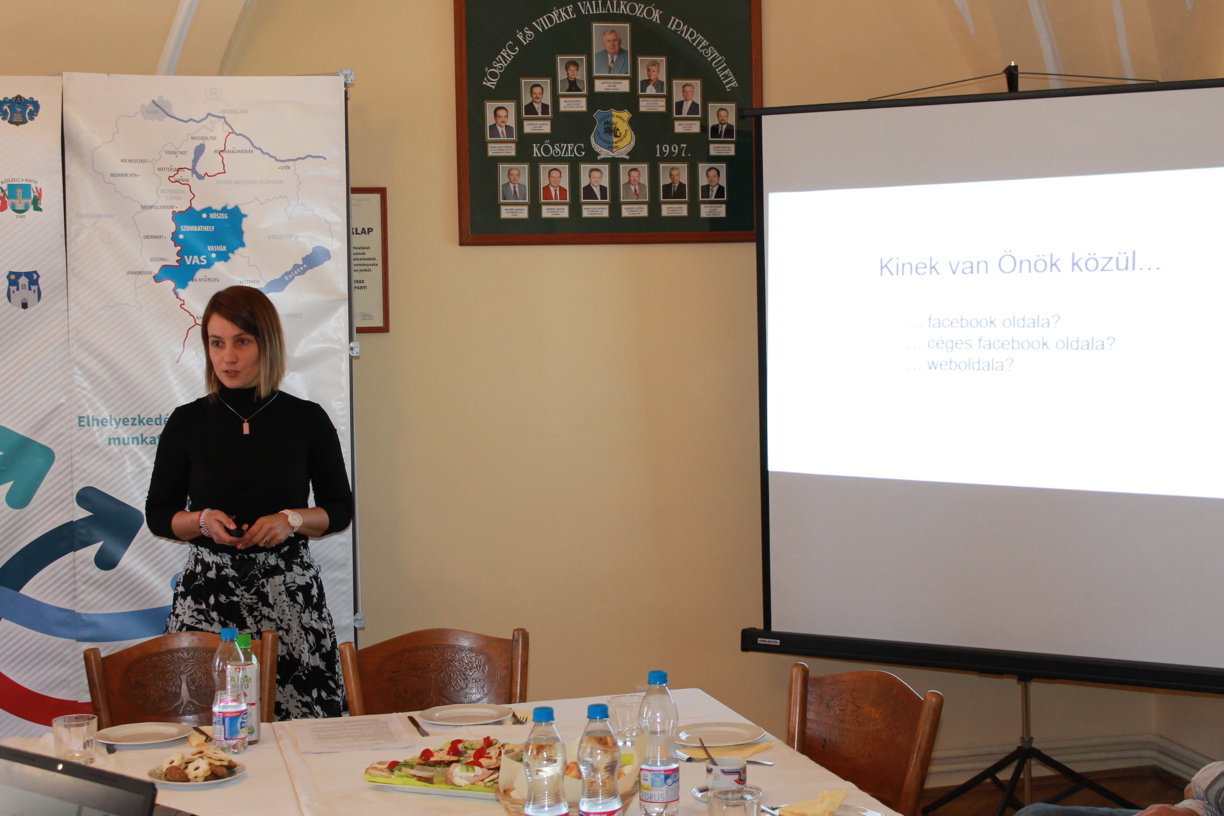 Breznovits István a Promen Tanácsadó Kft. ügyvezetője a Foglalkoztatási Paktum keretében elérhető szolgáltatások és támogatási lehetőségekről, Tolvaj Vica kezdő, Paktum által támogatott vállalkozó az online praktikákról tartott előadást. Hollósi Szabolcs tréner a céges márkaépítés rejtelmeibe vezette el a hallgatóságot, dr. Biroszné Móritz Zsuzsanna szakértő pedig a családbarát foglalkoztatást és a Vas Megyei Közgyűlés által alapított Családbarát Munkahely Díj pályázati lehetőségeit mutatta be a jelenlévőknek. Fontos információkat hallhattak még a vállalkozók az ügyfélkapu használatáról is.