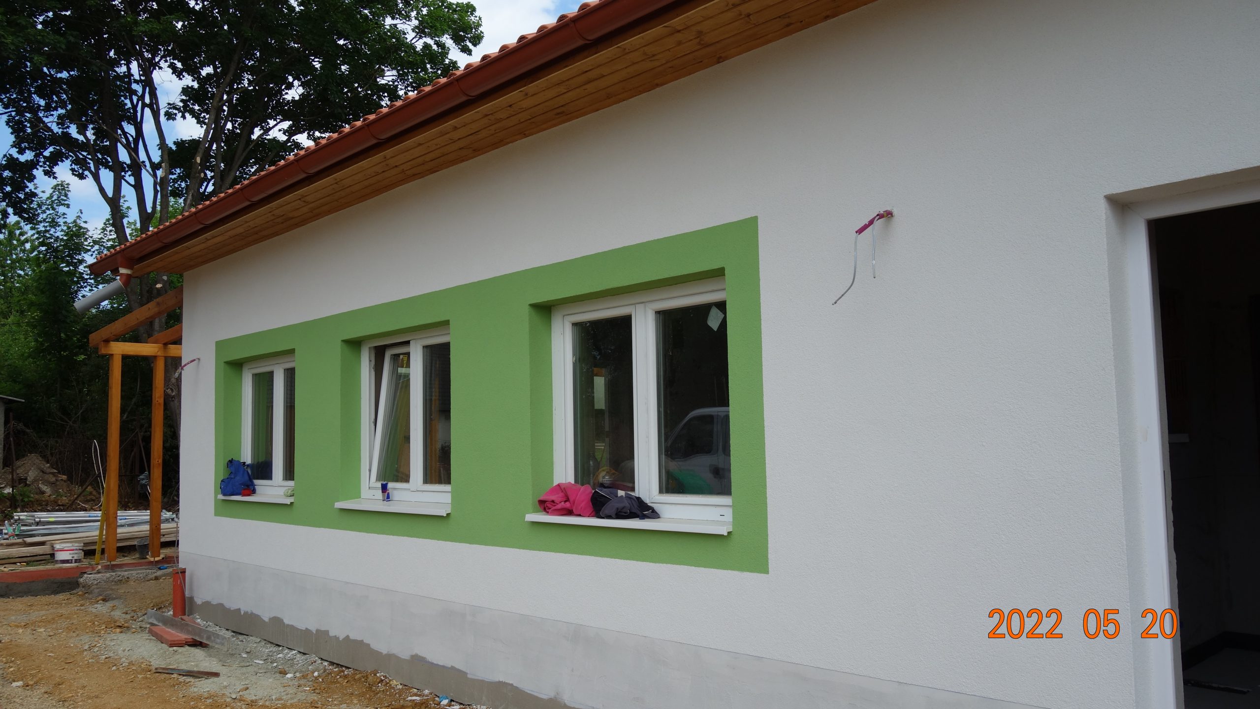 A beruházás megfelelő ütemben folytatódik, jelenleg 75%-os a készültségi fok. Elkészültek a homlokzatképzési munkák, az összes külső nyílászáró a helyére került. Kinti munkák közül a járda alépítményi munkái, a terasz tetőszerkezete is elkészült és megtörtént a játék tároló felállítása. A belső építési munkák is zajlanak, elkészült az aljzatbeton a padozat hőszigetelése, padlófűtés csövezése és a falak glettelése is.