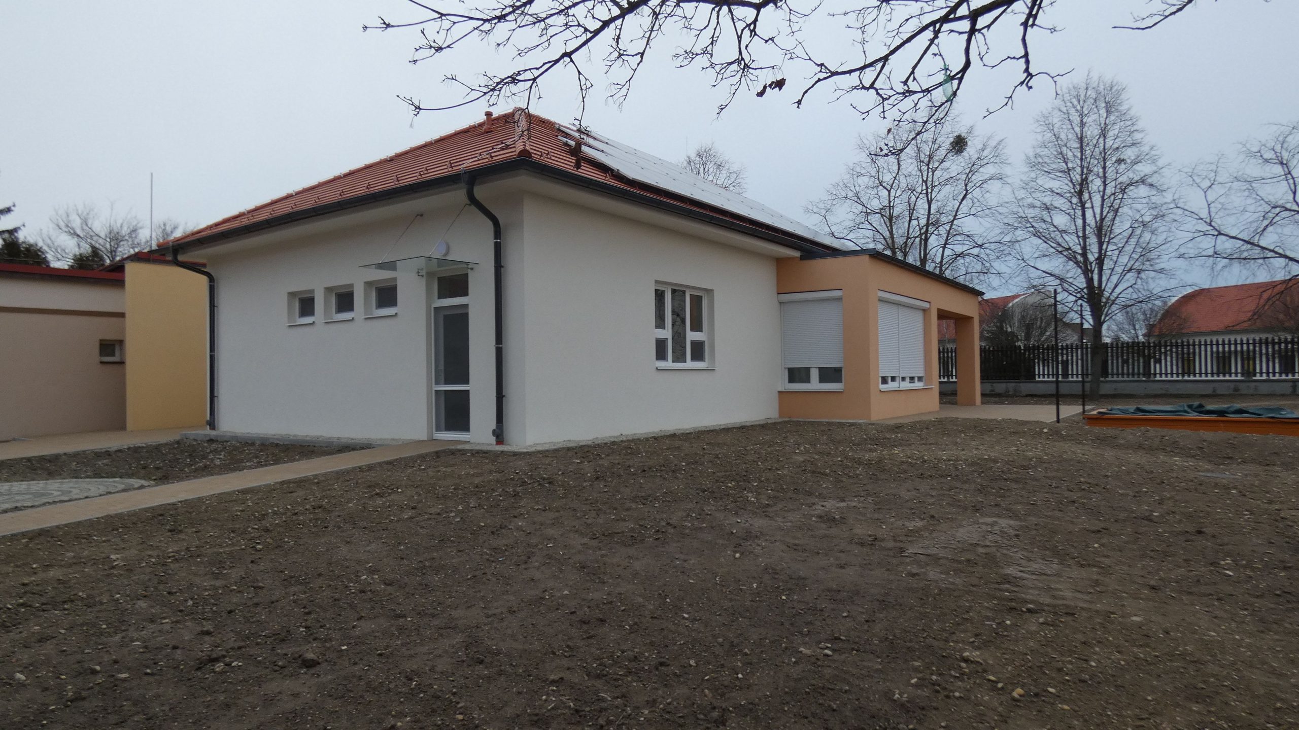 A 151,74 m2 hasznos alapterületű épület a meglévő bölcsőde előtti területen kapott helyet. Az építés során egy csoportszoba került kialakításra a szükséges kiszolgáló helyiségekkel együtt a következők szerint: a fedett belépő a babakocsi tárolóba nyílik, ahonnan közvetlenül elérhető az akadálymentes mosdóhelyiség. A babakocsi tárolóból az öltözőbe, majd onnan a csoportszobába jutunk. A csoportszoba a fedett teraszon keresztül közvetlen kertkapcsolattal rendelkezik. Az épületben a fentiek mellett tálaló konyha, személyzeti öltöző, zuhanyzó és WC, valamint gépészeti helyiség található.