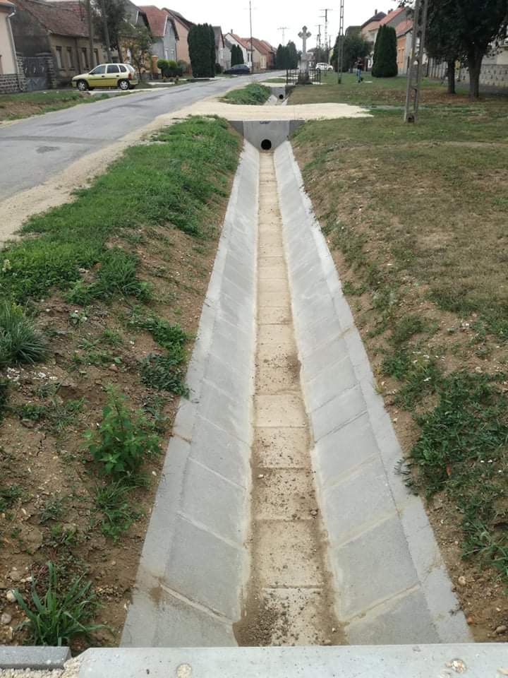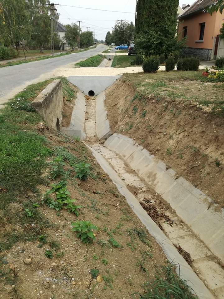 Az árkok rekonstrukciója döntő részben nyílt, földmedrű, betonlapos fenékburkolással ellátott árkok kialakítását jelenti. A község településfejlesztési koncepciója a Kossuth Lajos utca frekventált részein zárt csapadékvíz-elvezető rendszer kialakítását írja elő. Az árkok az iszapolási munkák elvégzése után beton lapokkal kerülnek burkolásra. A meglévő átereszek átmérője megfelelő, ezért cseréjük nem, csak tisztításuk tervezett.