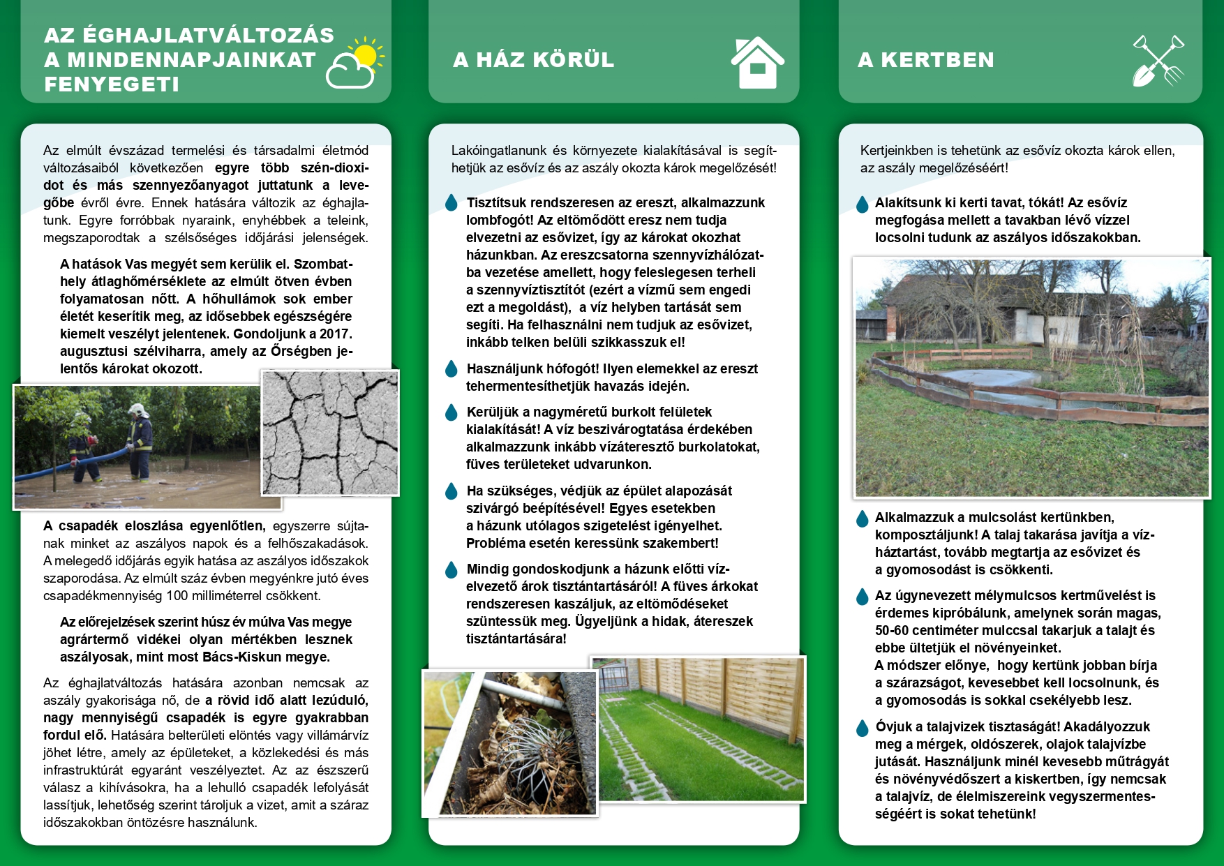 A fejlesztés részeként a lakosság környezettudatosságának és vízgazdálkodással kapcsolatos ismereteinek bővítése érdekében szemléletformáló akcióra is sor került: a helyi lakosság számára szórólapokat készítettek, melyben a projektben megvalósított fejlesztés bemutatásán túl felhívták a figyelmet a vízgazdálkodás, illetve a vizek helyben tartásának fontosságára.