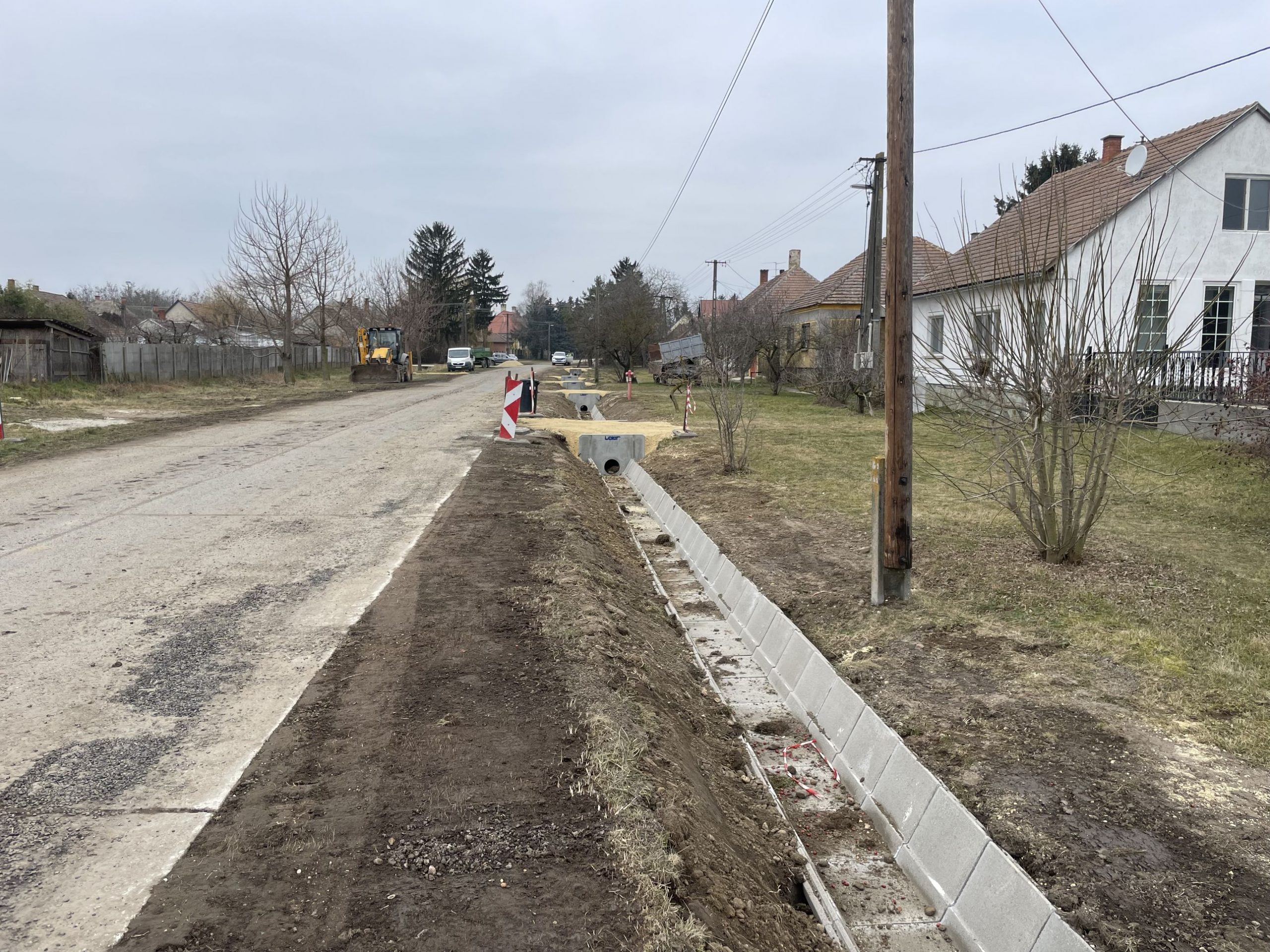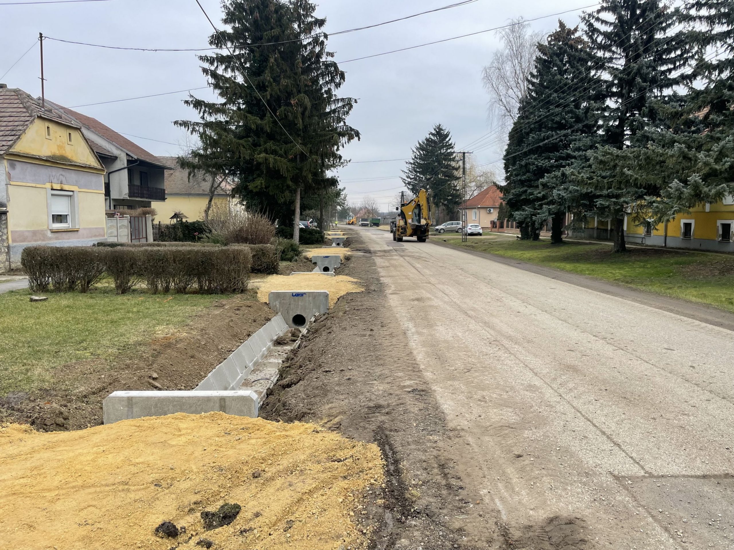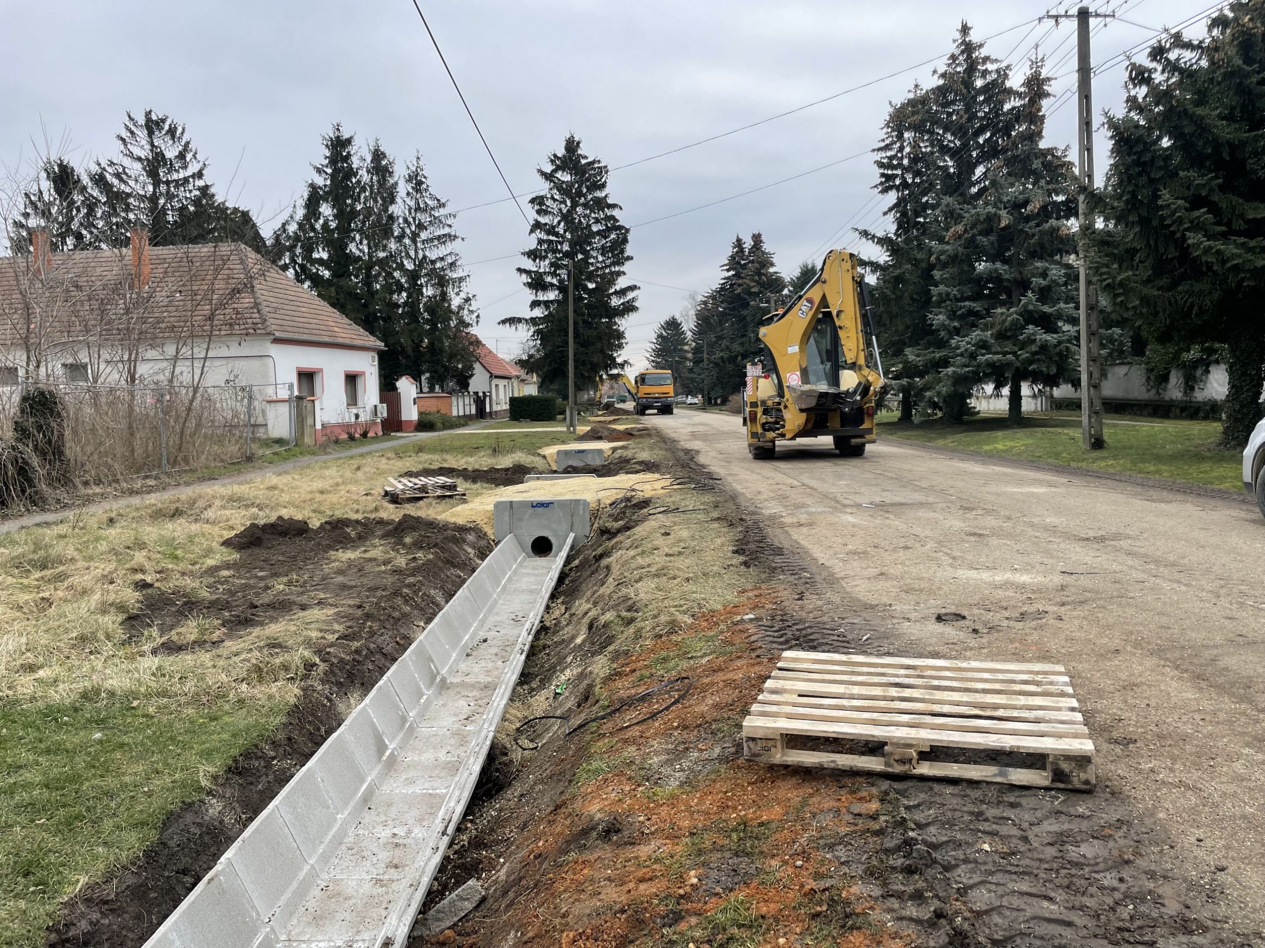 2022. szeptemberében az Önkormányzat átadta a munkaterületet vállalkozó részére. A tényleges kivitelezési munkák 2022. októberben kezdődtek meg, területelőkészítési, irtási munkákkal. Elkészült a csapadékvíz elvezető rendszer burkolt árkainak a földmunkája, valamint a mederelemek egy részének beépítése és a levezető árok földmunkája. A kivitelezési munkálatok 2023. február 14-én elérték az 50%-os készültségi szintet.