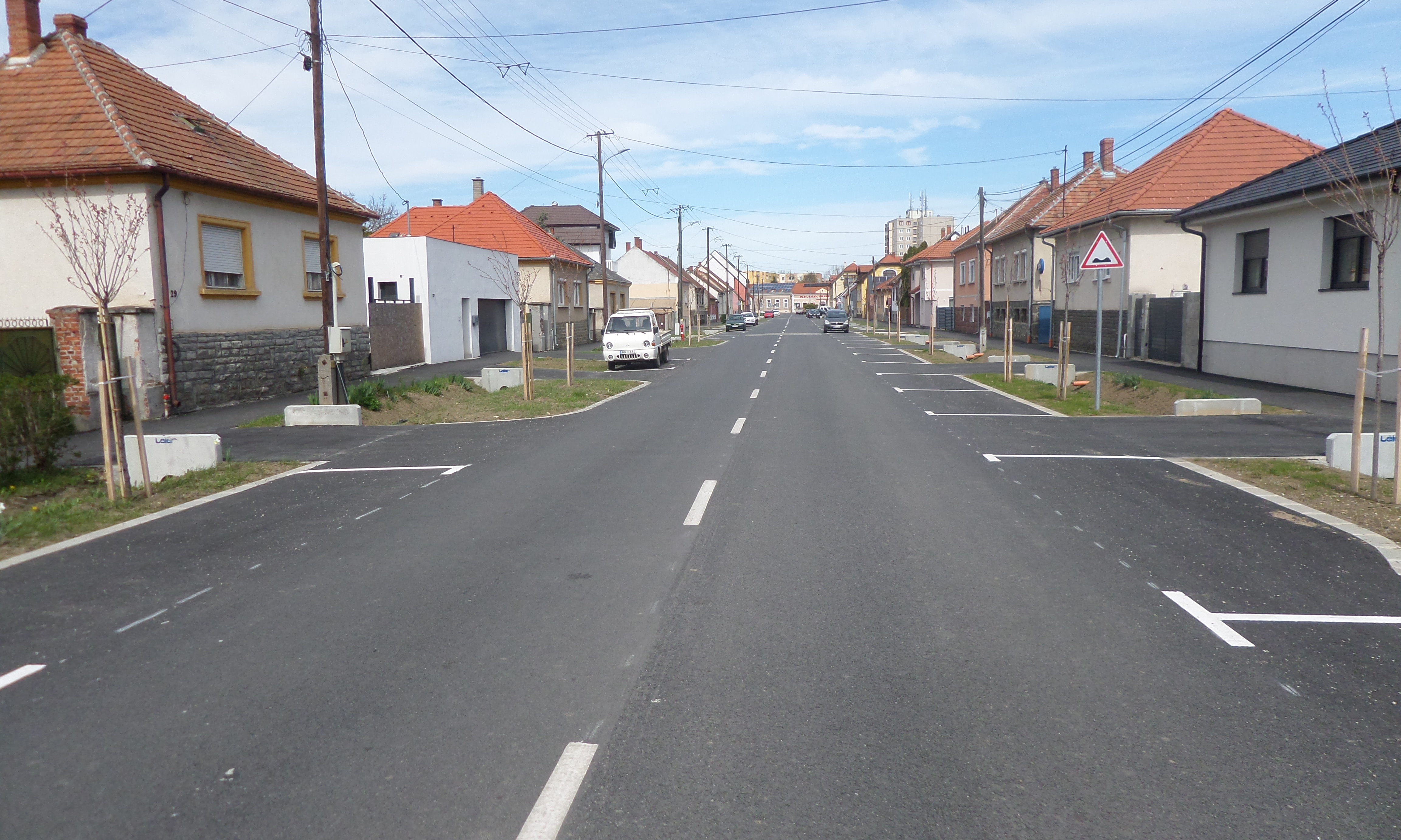 1, Berzsenyi Dániel utca: 6 méter burkolatszélességű útpálya kerül kialakításra 364 m hosszan, kétoldali süllyesztett szegélyes párhuzamos parkolósávval. A meglévő járda helyén 2 m széles aszfaltburkolatú járda épül mindkettő oldalon. A járda és parkolók között a meglévő nyílt árok rendezésre kerül. A kapubejárók aszfaltburkolatból átépítésre kerülnek, kapubejárók szélén kerti szegély épül. A területen 48 db párhuzamos személygépkocsi parkoló kerül kialakításra.