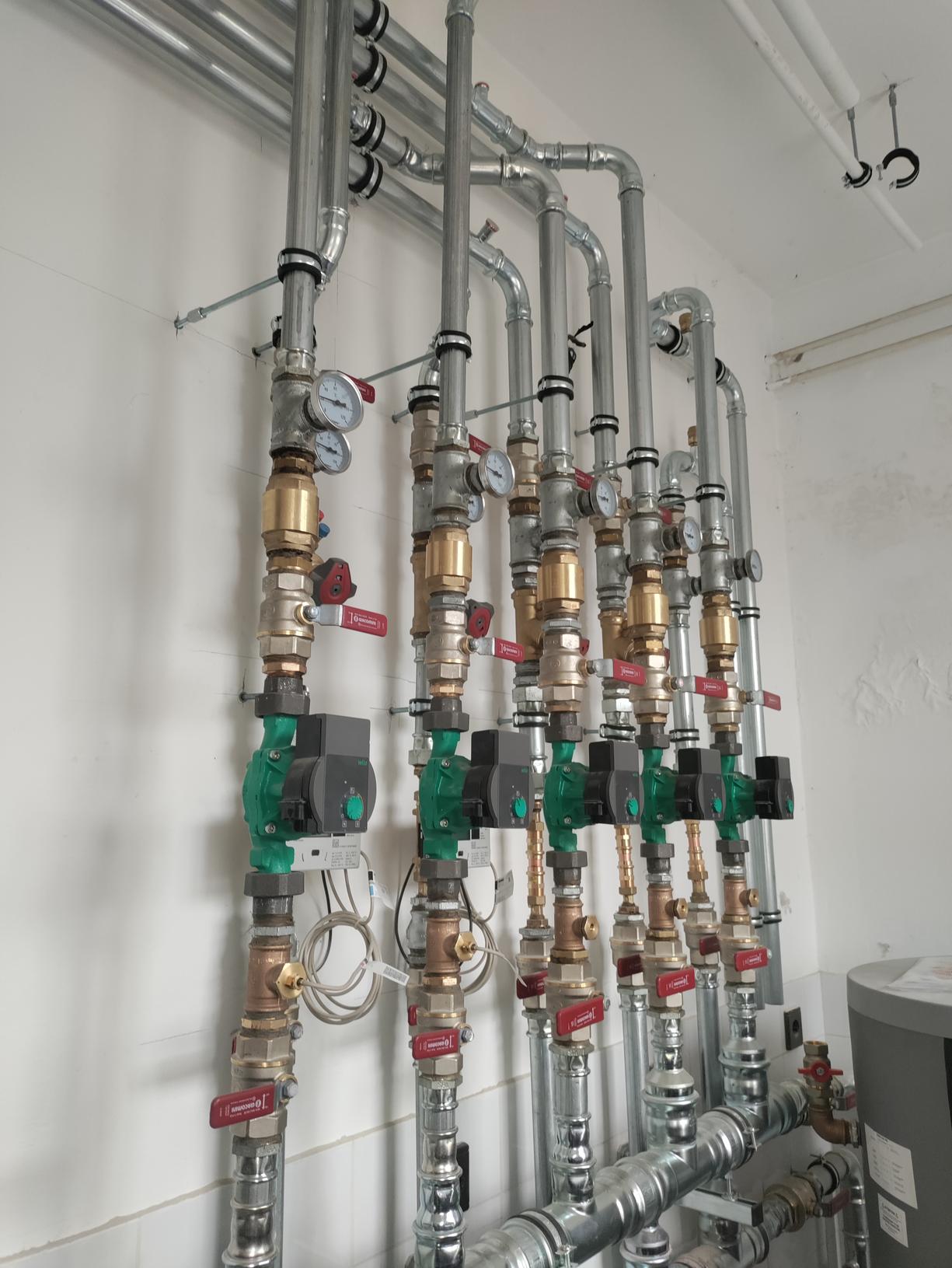A projekt keretében az épület gépészeti rendszere teljes felújításon esett át. Korszerű kondenzációs gázkazánok kerültek beépítésre, amelyek hatékonyabban látják el a fűtést, és egy indirekt tárolóval kiegészített használati melegvíz-rendszer is kialakításra került. A fűtési rendszer korszerűsítése keretében sor került termosztatikus radiátorszelepek és fejek cseréjére is.