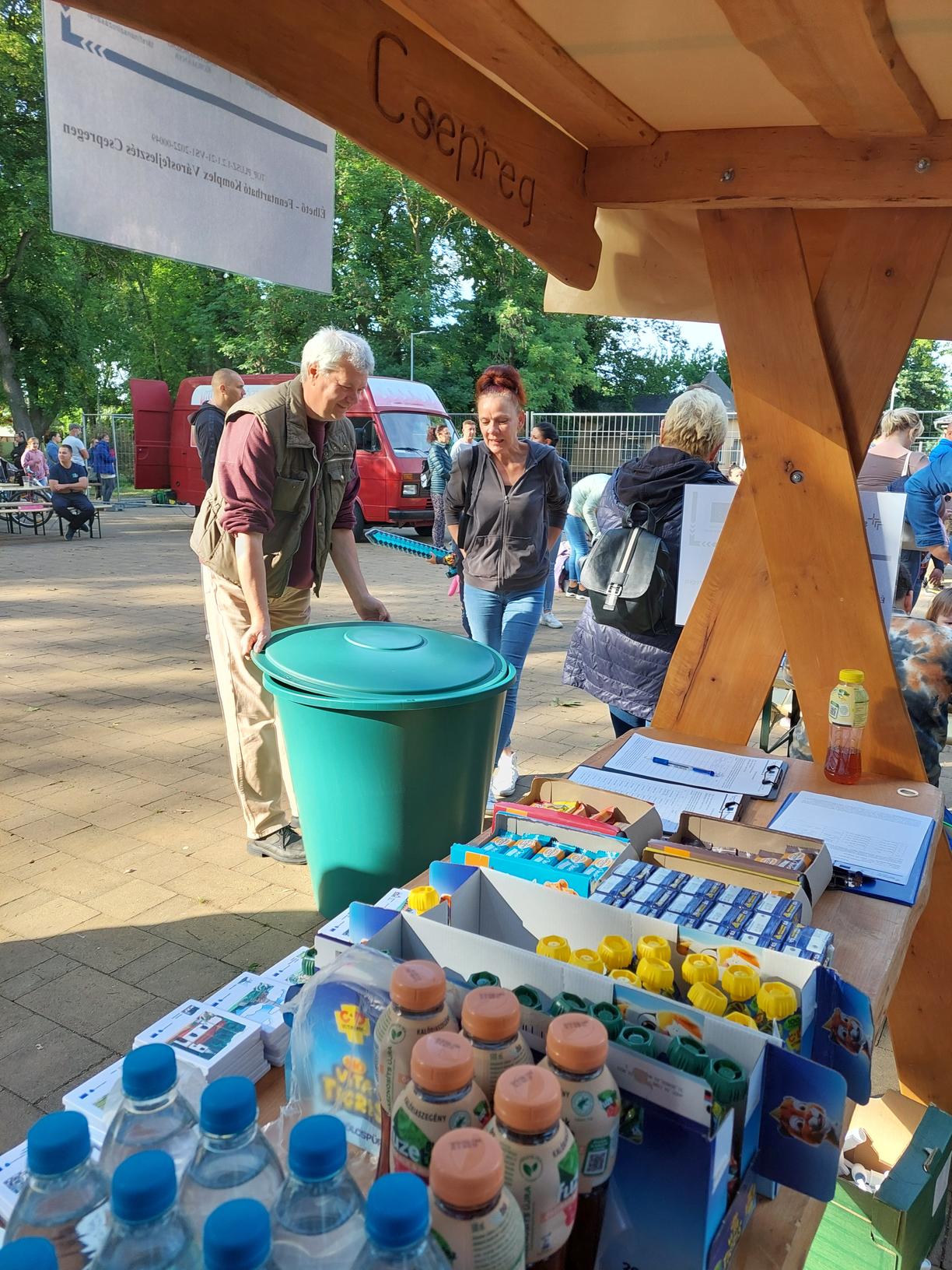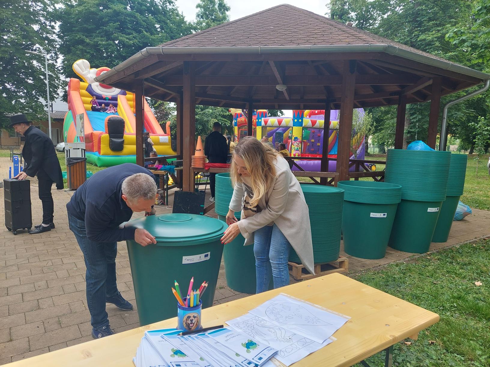 „A víz kincs!” szemléletformáló program keretében a Vas Vármegyei Önkormányzati Hivatal munkatársai esővízgyűjtő hordókat osztottak ki a fejlesztéssel érintett utcákban lakók részére.