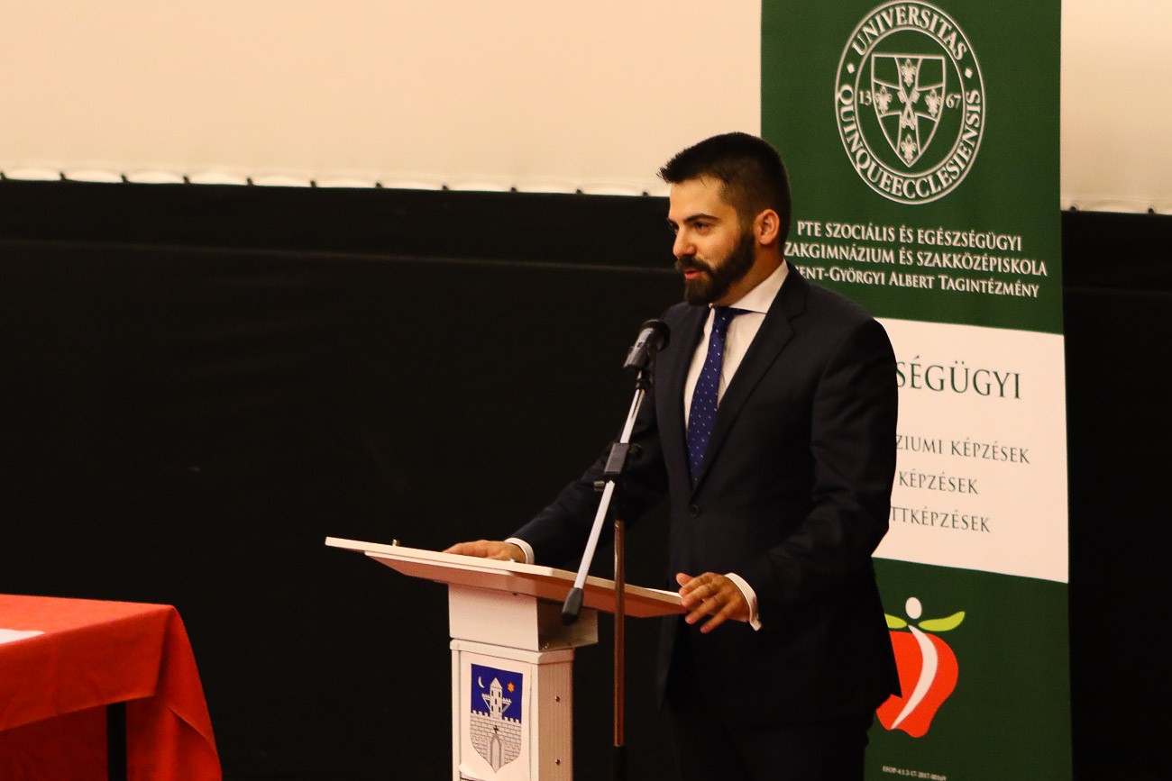 A Pécsi Tudományegyetem Szociális és Egészségügyi Szakgimnázium és Szakközépiskola Szent-Györgyi Albert Tagintézmény a hagyományteremtés jegyében OKJ-s bizonyítványátadó ünnepséget rendezett. A rendezvényen köszöntő beszédet mondott dr. Balázsy Péter megyei jegyző is. Az ünnepségen nappali és esti munkarendben tanuló 101 diák vehette át Gyakorló ápoló, Ápoló, Gyakorló csecsemő és gyermekápoló, Csecsemő és gyermekápoló, Gyakorló Mentőápoló, Mentőápoló, Gyógymasszőr, Gyógyszertári asszisztens, Fogászati asszisztens, Fizioterápiás asszisztens, Radiográfiás asszisztens bizonyítványát.