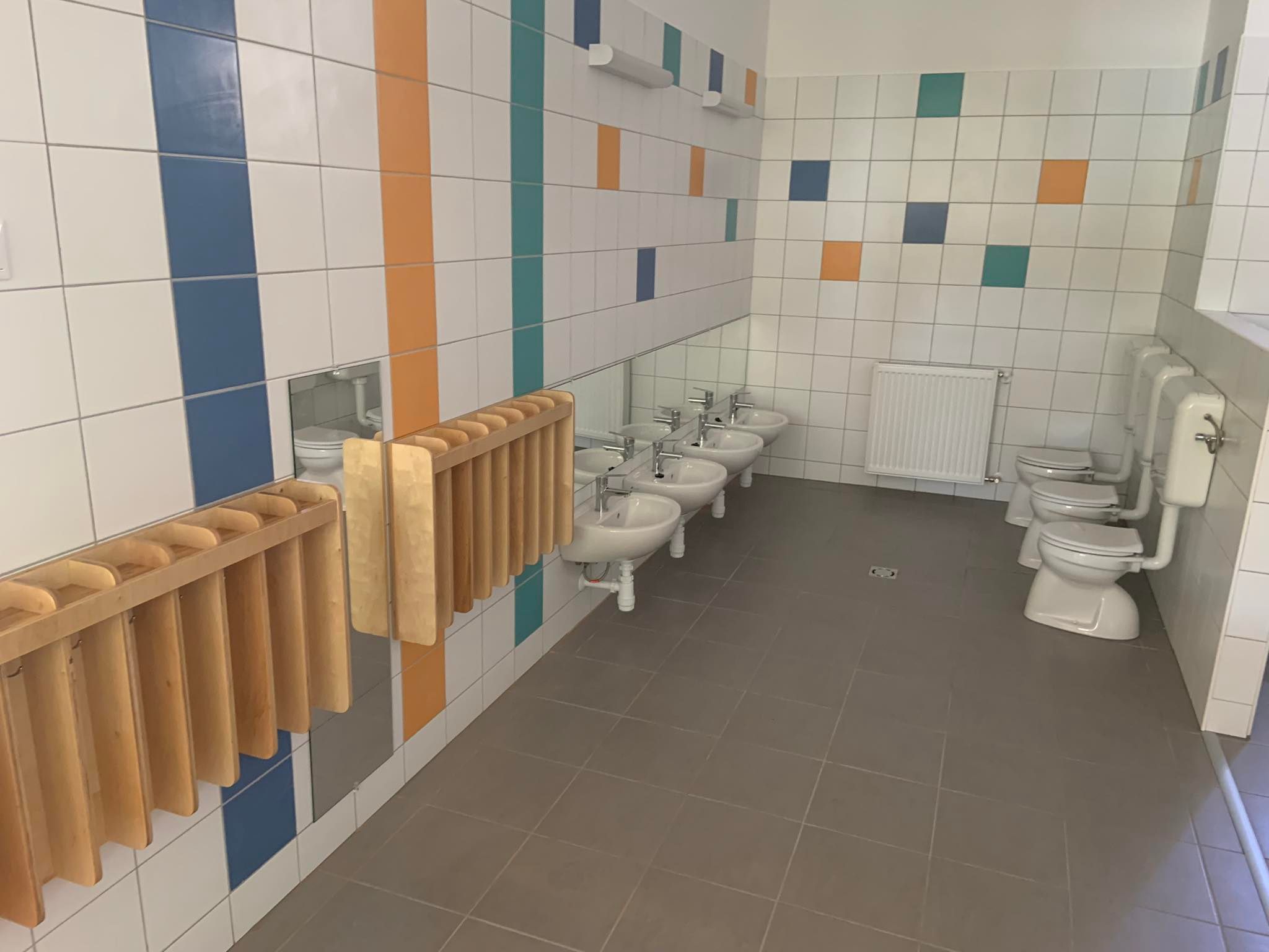 A csoportszobák az újonnan építendő épületrészben kapnak helyet, melyek a játszóudvar felé fordulnak. A csoportszobákhoz részben fedett teraszok kapcsolódnak, összeköttetést kialakítva a játszóudvarral.
