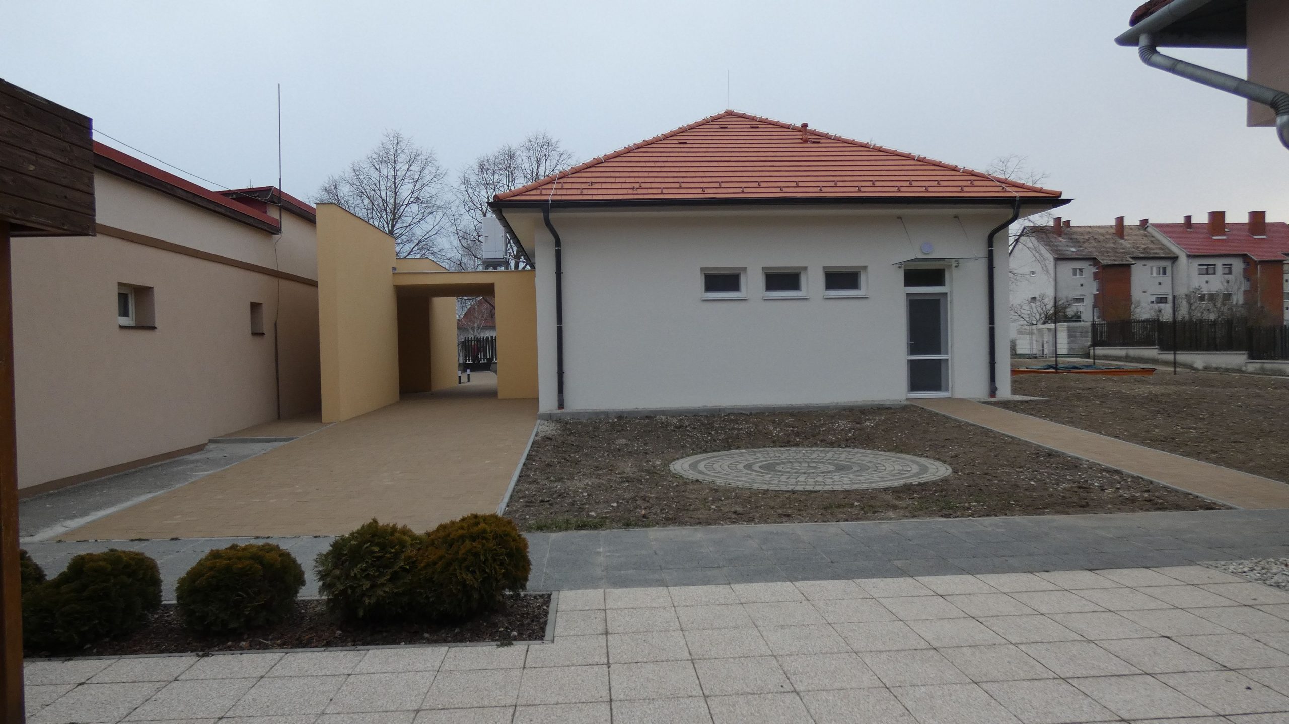 A 151,74 m2 hasznos alapterületű épület a meglévő bölcsőde előtti területen kapott helyet. Az építés során egy csoportszoba került kialakításra a szükséges kiszolgáló helyiségekkel együtt a következők szerint: a fedett belépő a babakocsi tárolóba nyílik, ahonnan közvetlenül elérhető az akadálymentes mosdóhelyiség. A babakocsi tárolóból az öltözőbe, majd onnan a csoportszobába jutunk. A csoportszoba a fedett teraszon keresztül közvetlen kertkapcsolattal rendelkezik. Az épületben a fentiek mellett tálaló konyha, személyzeti öltöző, zuhanyzó és WC, valamint gépészeti helyiség található.