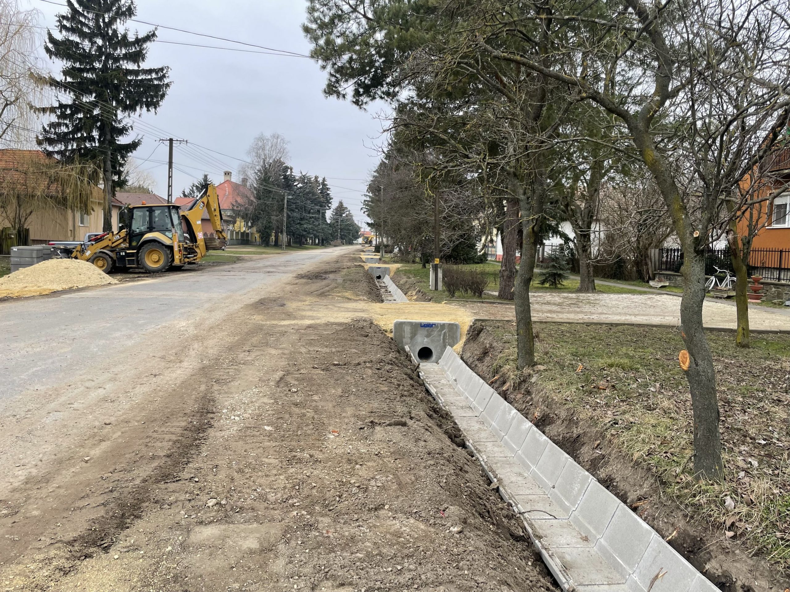 2022. szeptemberében az Önkormányzat átadta a munkaterületet vállalkozó részére. A tényleges kivitelezési munkák 2022. októberben kezdődtek meg, területelőkészítési, irtási munkákkal. Elkészült a csapadékvíz elvezető rendszer burkolt árkainak a földmunkája, valamint a mederelemek egy részének beépítése és a levezető árok földmunkája. A kivitelezési munkálatok 2023. február 14-én elérték az 50%-os készültségi szintet.