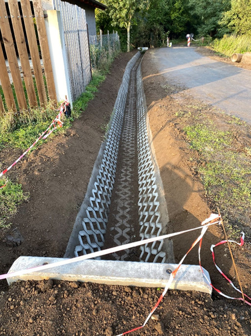 4) Vadász utca – teljes körű csapadékvíz elvezetés történik mintegy 570 m hosszban. Az utca mindkét oldalán új árkok létesülnek. Ebből a páratlan oldalon ~240 fm, a páros oldalon ~190 fm gyephézagos burkolatú árok kerül kialakításra.