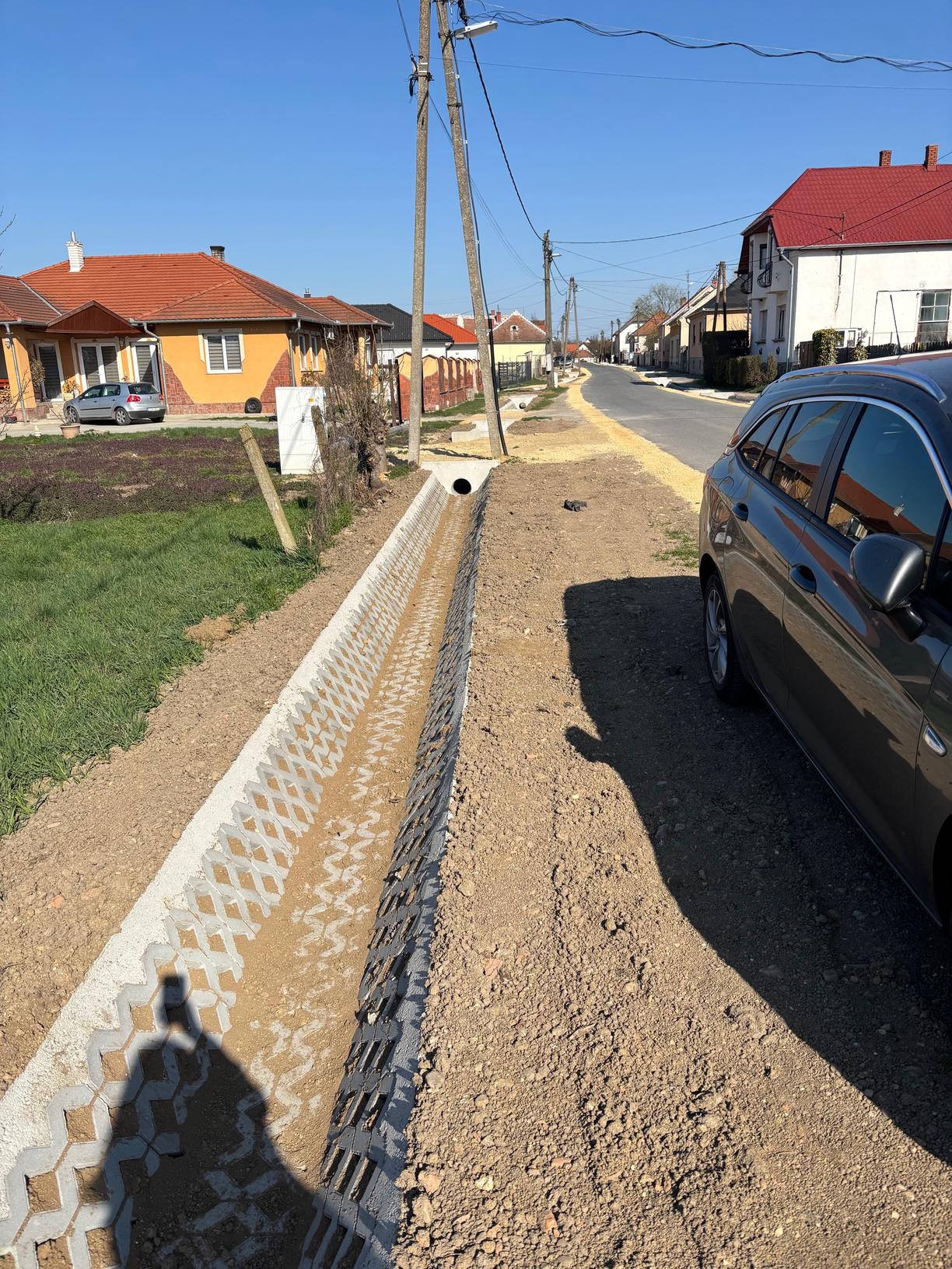7) Bihari utca – kétoldali csapadékvíz rendszer kialakítása valósul meg. A páros oldalon közel 365 fm árok épül, melyből ~285 fm gyephézagos burkolatkialakítású, míg a páratlan oldalon ~335 fm árok kerül kialakításra, melyből ~275 fm árokburkoló elemekkel épül.