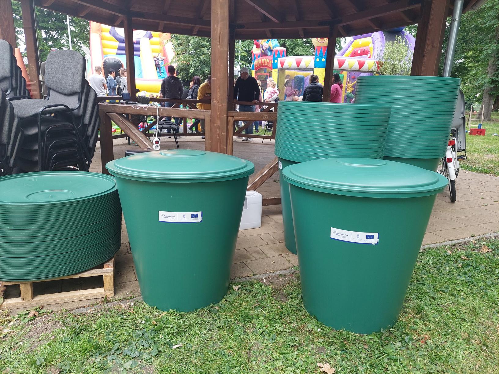 „A víz kincs!” szemléletformáló program keretében a Vas Vármegyei Önkormányzati Hivatal munkatársai esővízgyűjtő hordókat osztottak ki a fejlesztéssel érintett utcákban lakók részére.