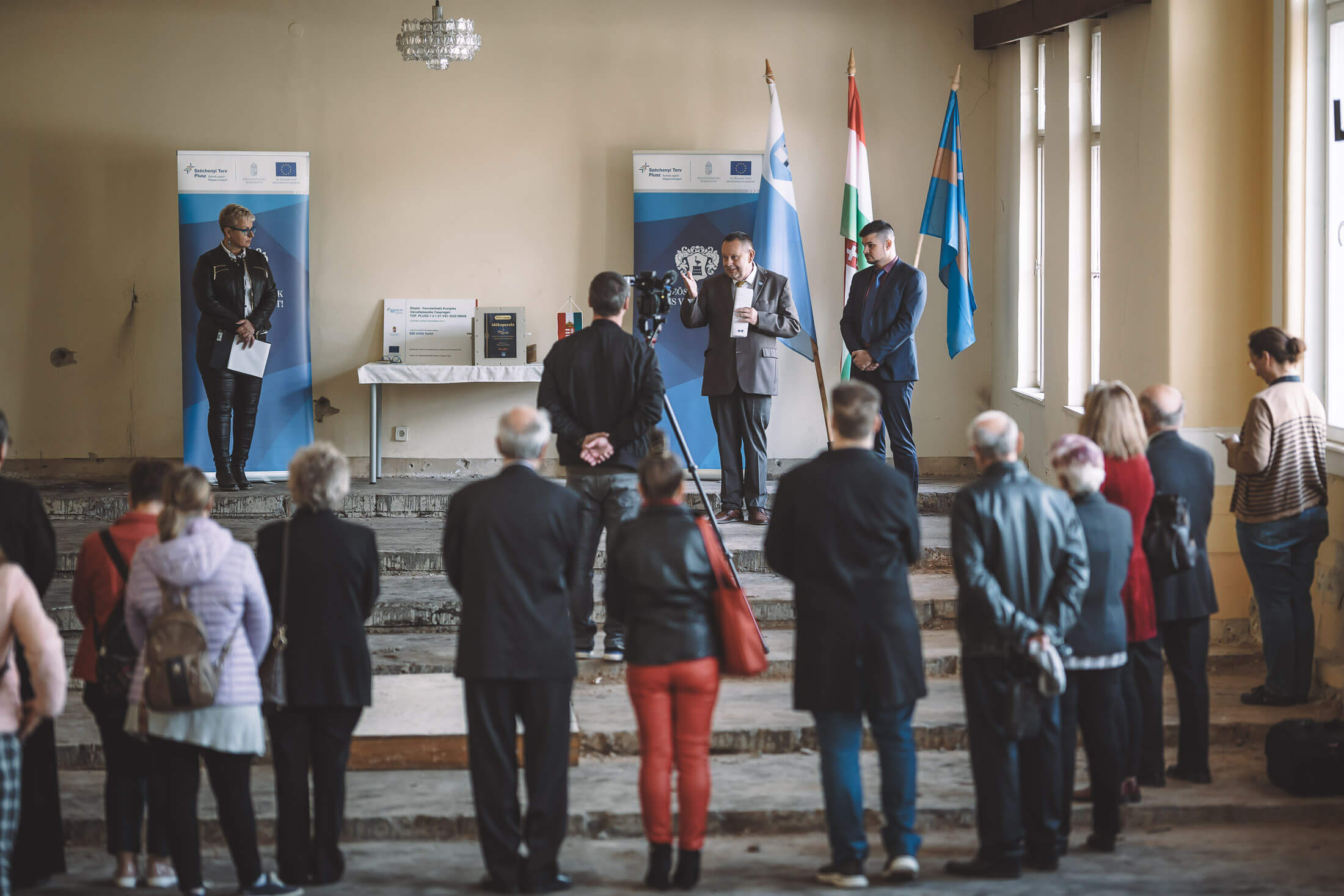 A Művelődési Ház felújítási munkáinak folytatása érdekében újabb közbeszerzési eljárás folytattak le, melynek eredményeként a Vasi Bádogos Kft.-vel 2025. április 17-én került sor az új vállalkozási szerződés megkötésére. A munkaterületet 2025. április 22-én adták át a kivitelezőnek, aki ezt követően megkezdte a felújítási munkákat. Jelenleg az épület egyes helyiségeiben gépészeti, villamos és különböző építészeti munkák zajlanak (bontás, burkolás, festés, vakolás, álmennyezet-szerelés). A kivitelezés 2025. október 15-ére elérte az 50%-os, december 2-ára pedig a 80%-os készültségi szintet.