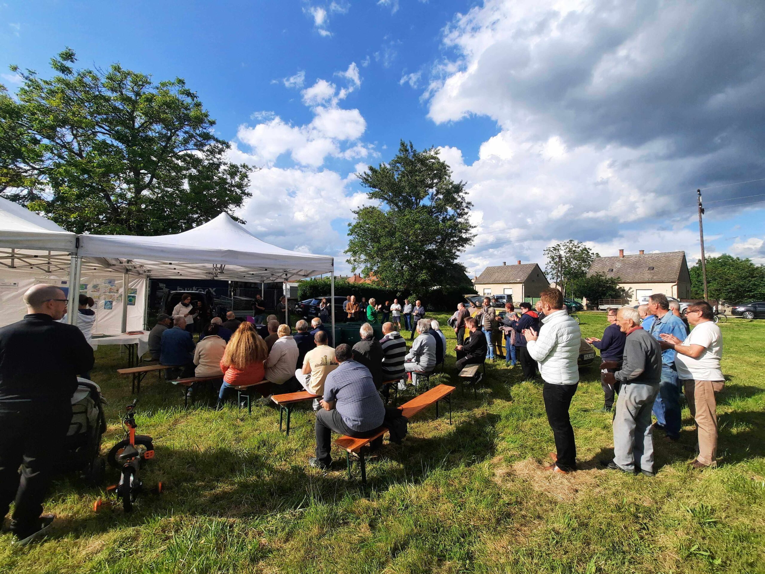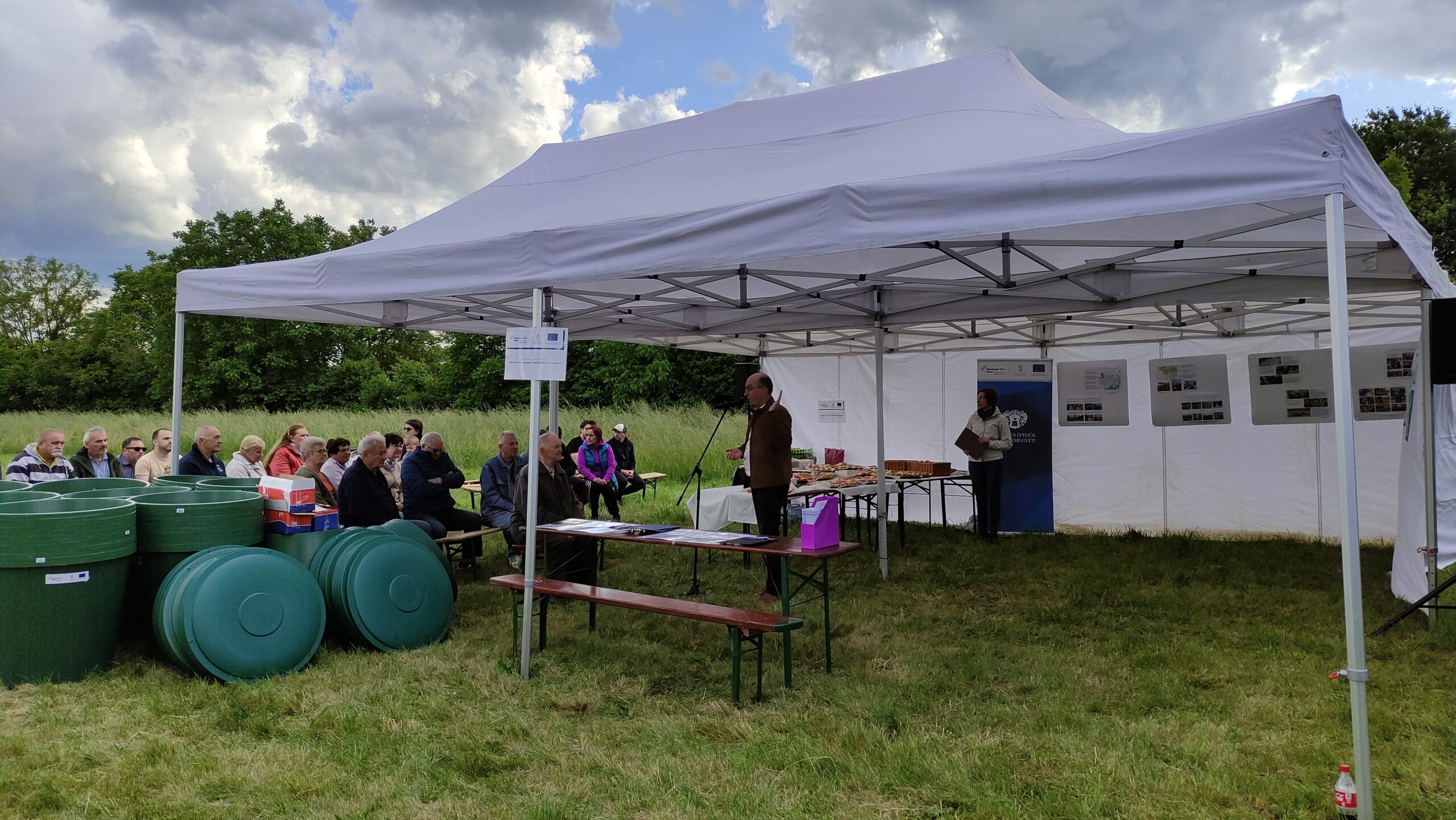 A „Sárvári kertvárosi piknik” elnevezésű rendezvényen esővíztároló hordókat osztottak ki a fejlesztéssel érintett utcákban lakók részére.